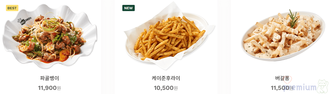 | 버갈퐁 | 11,500 | 버터갈릭 소스 + 감자튀김 |