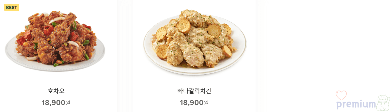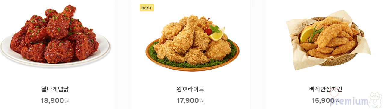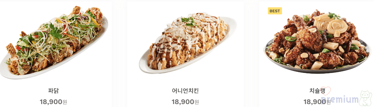 | 반반 치킨 | 16,900 | 크리스피 치킨 + 양념 치킨 |