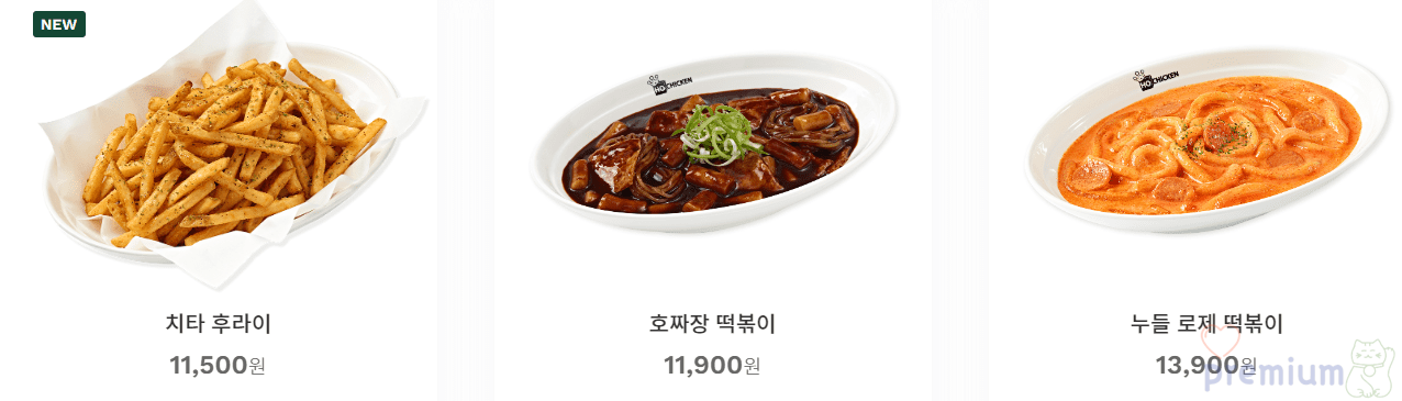 | 호짜장 떡볶이 | 11,900 | 찐 짜장 떡볶이 |