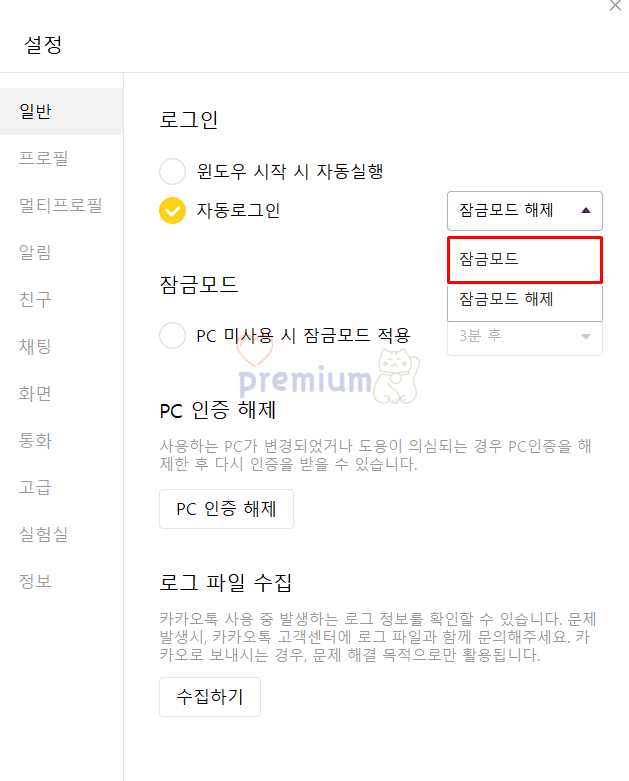 - PC 카카오톡 잠금모드 해제 방법은 '자동로그인 항목에서 잠금모드 해제'를 클릭하시면 잠금모드가 해제됩니다.
