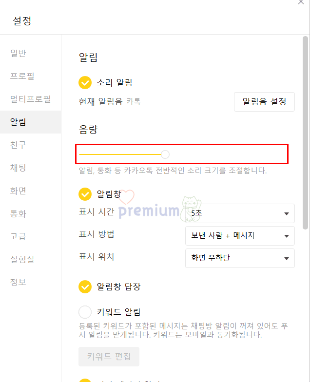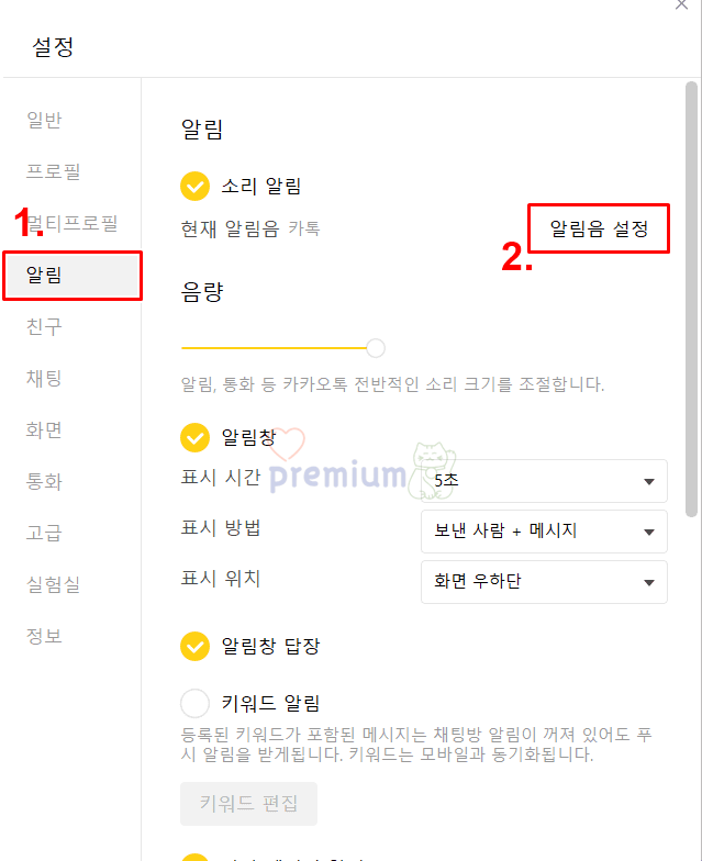 만약에 소리 알림 버튼이 체크되어 있지 않으신 분들은 소리 알림 버튼을 먼저 체크하시길 바랍니다.