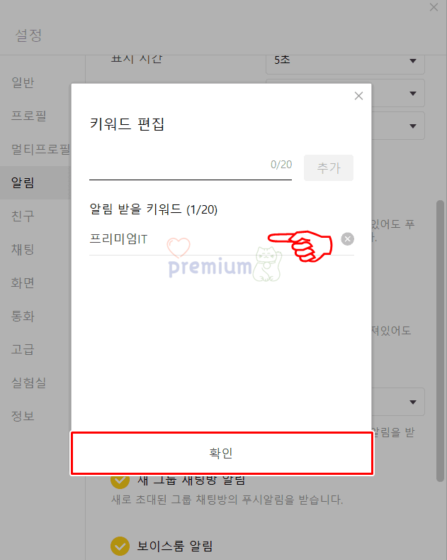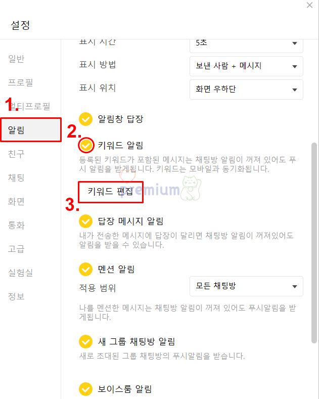 PC 카카오톡 키워드 알림 설정 방법
