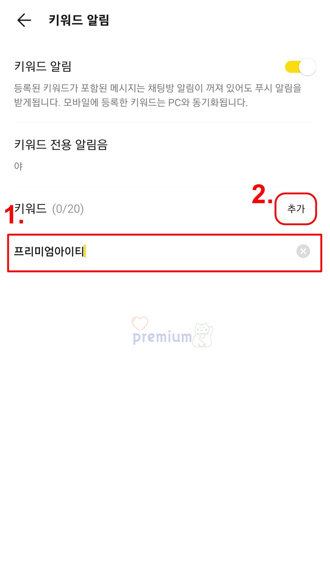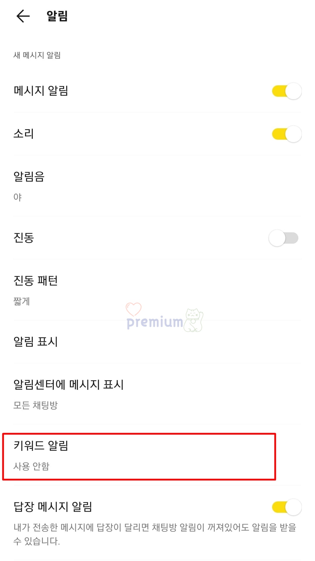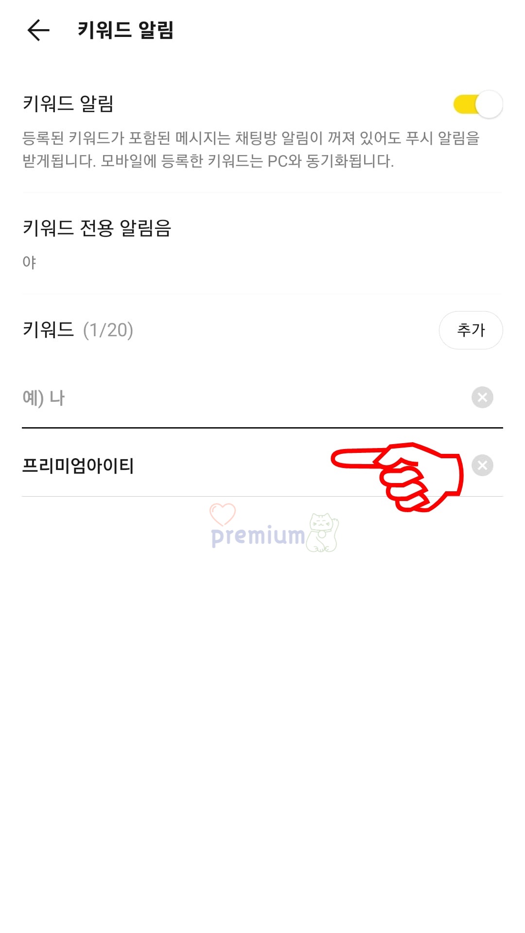 모바일 카카오톡 키워드 알림 설정 방법
