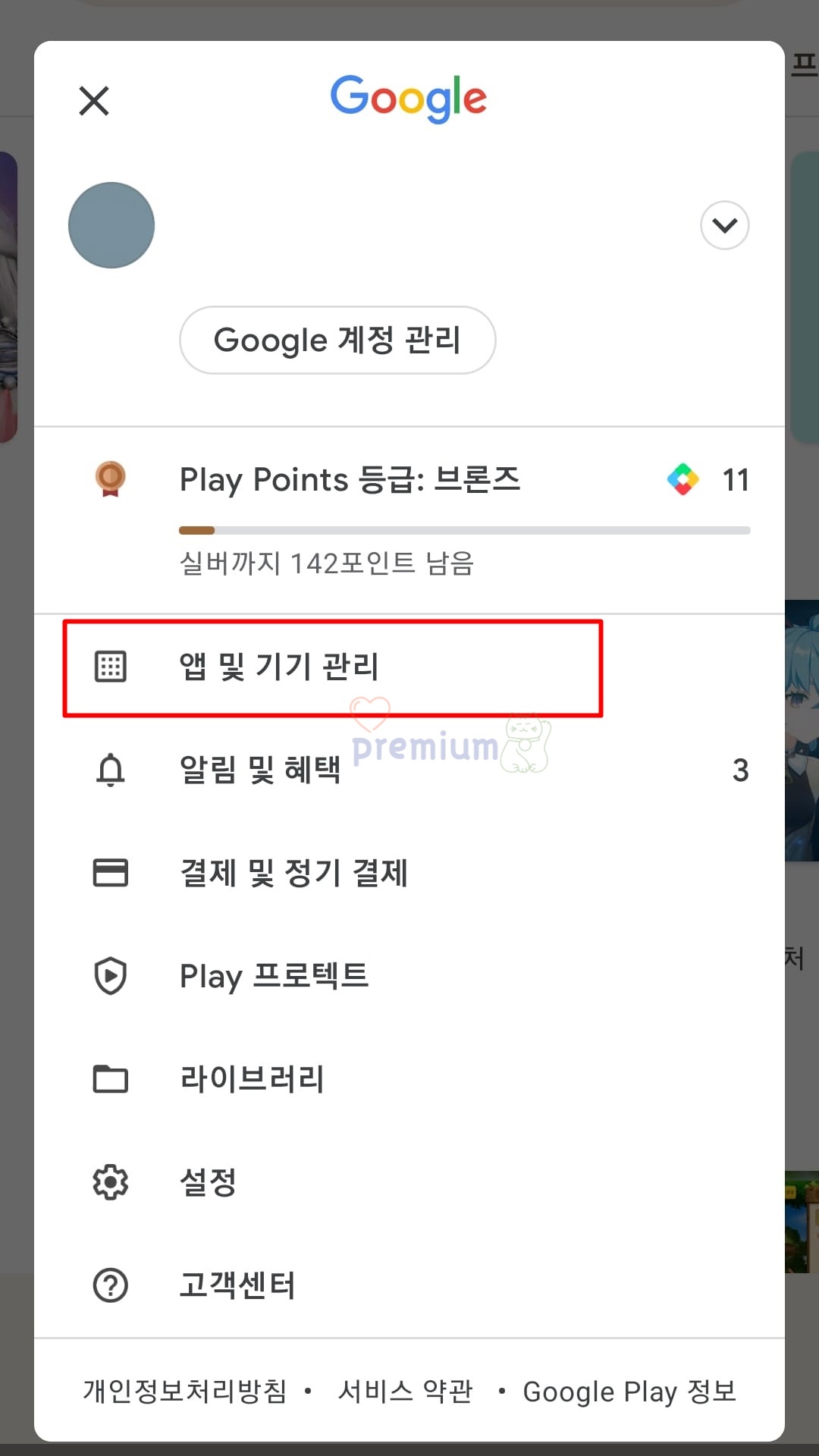 3. 앱 및 기기 관리를 클릭합니다.
