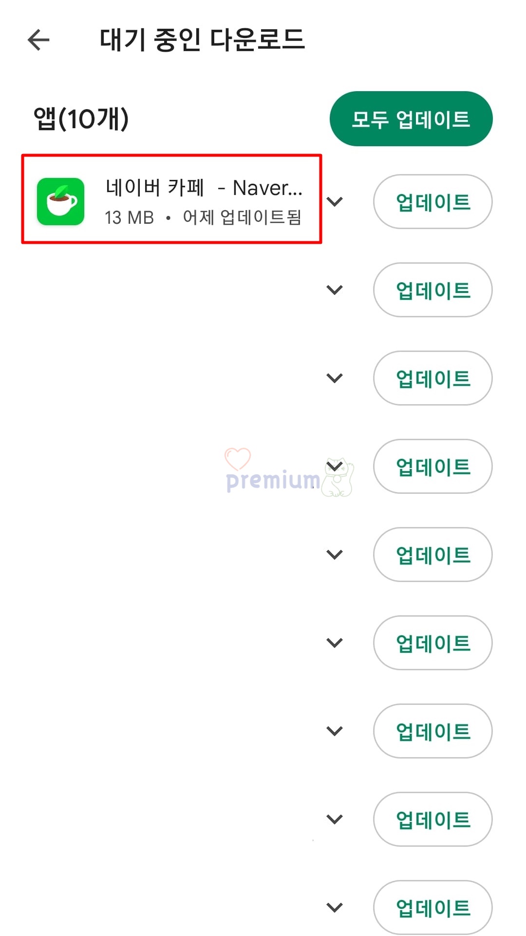 대기 중인 다운로드 앱 중에서 자동 업데이트 설정 및 해제를 원하는 특정 앱을 클릭하시면 됩니다.