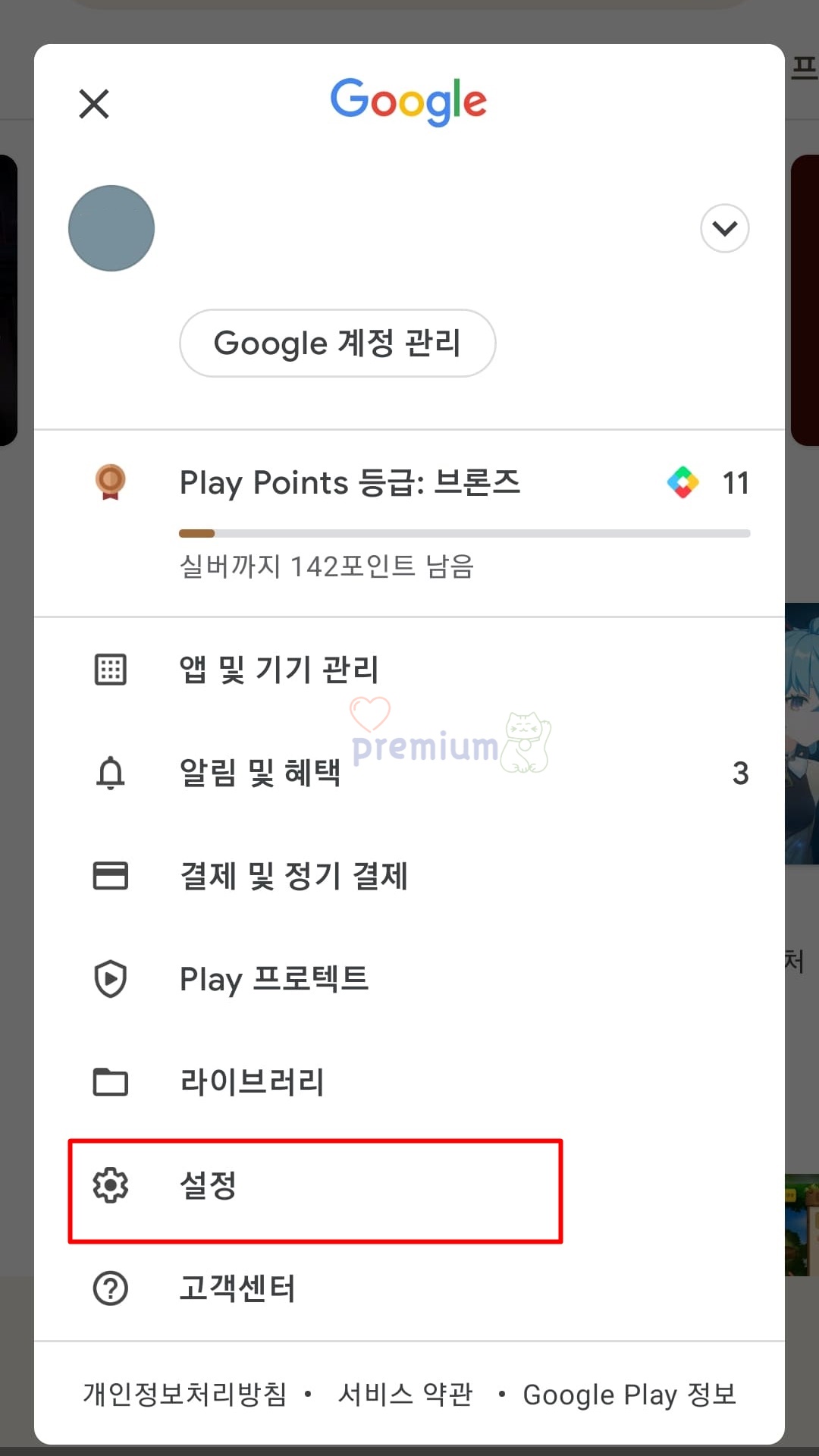 3. 설정을 클릭합니다.