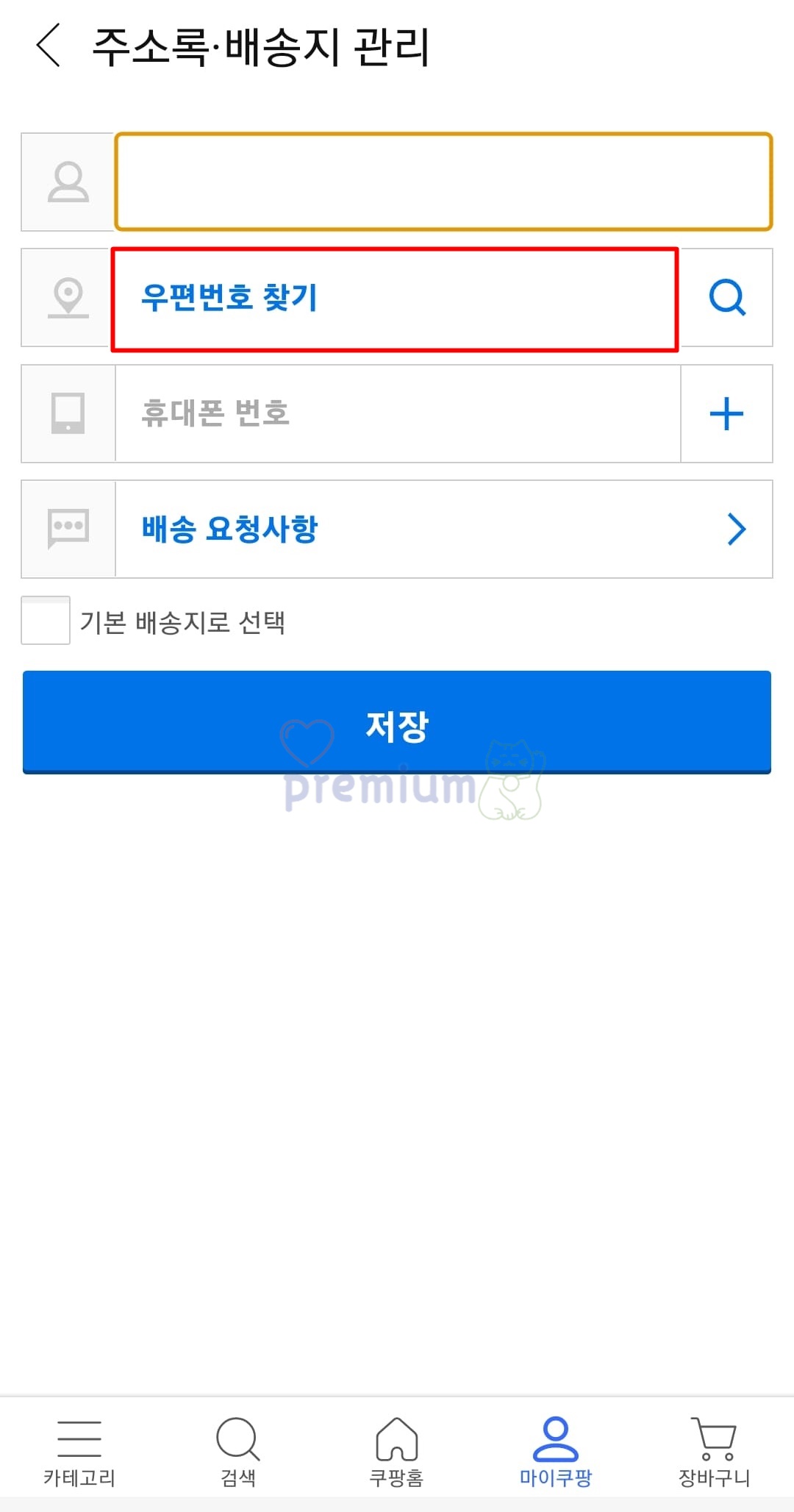 쿠팡 앱에서 배송지 등록 방법