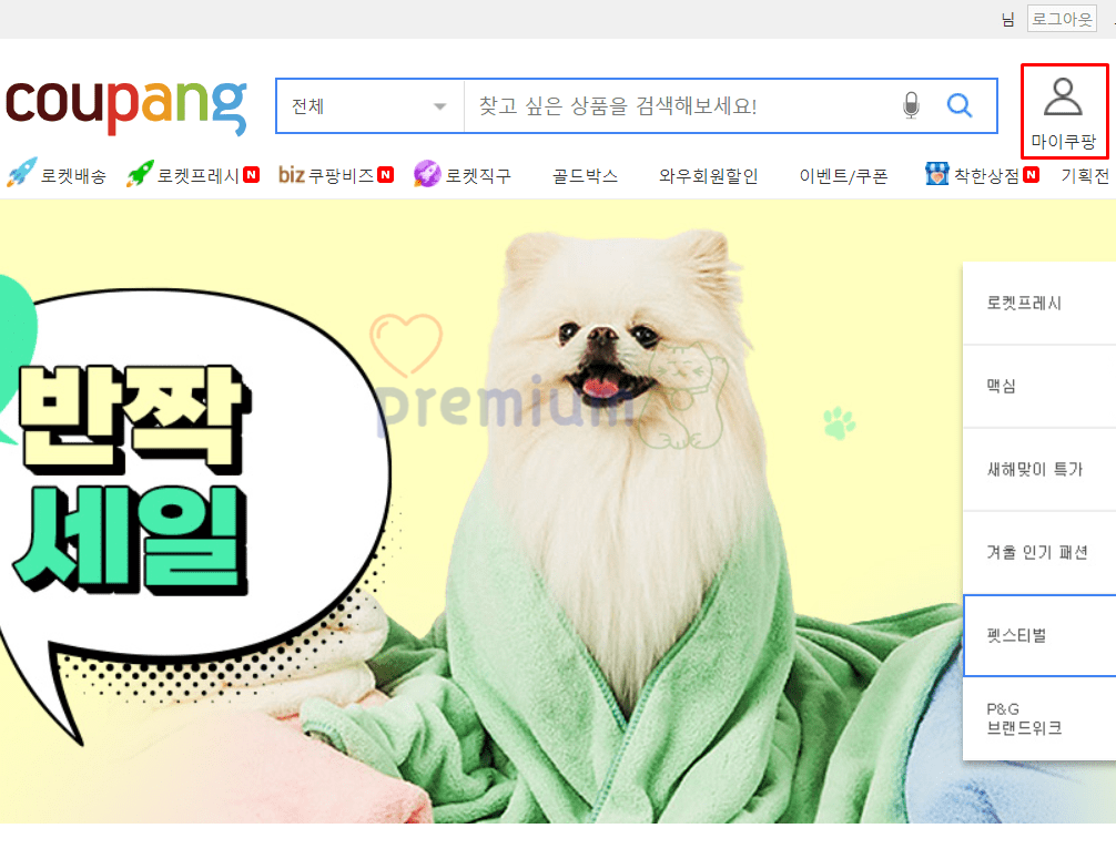 1. '쿠팡 홈페이지'를 실행합니다. (https://www.coupang.com)