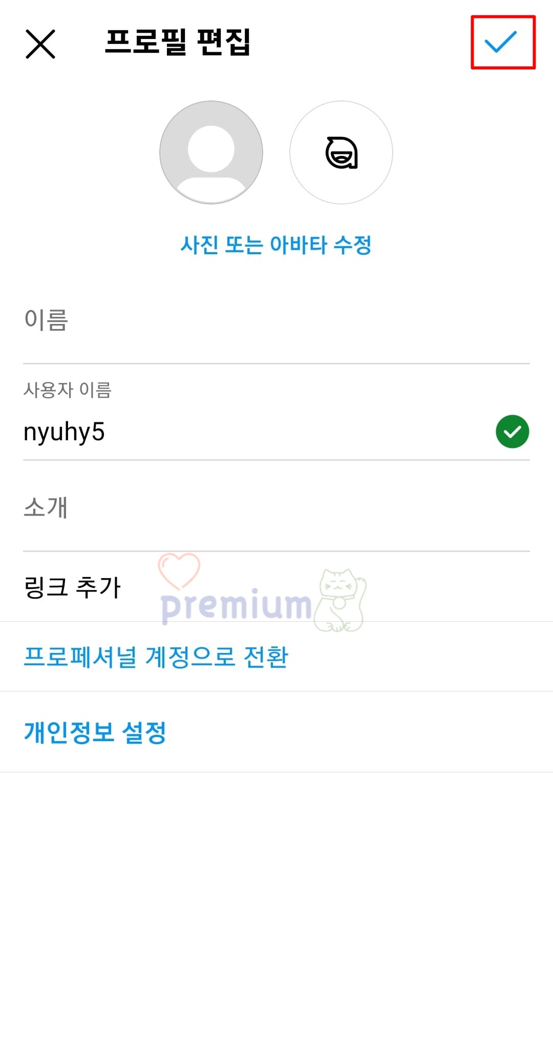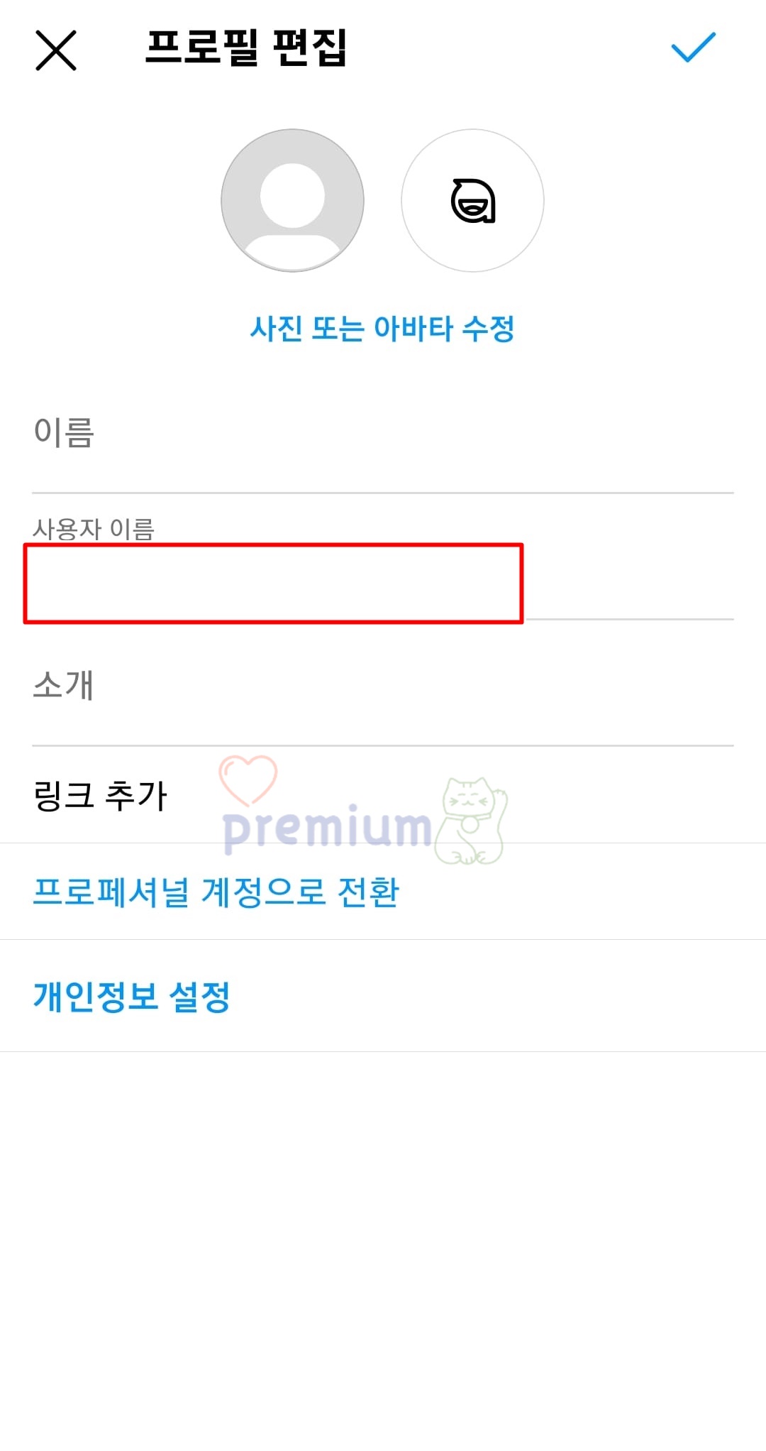 모바일 인스타그램 사용자 이름 변경 방법