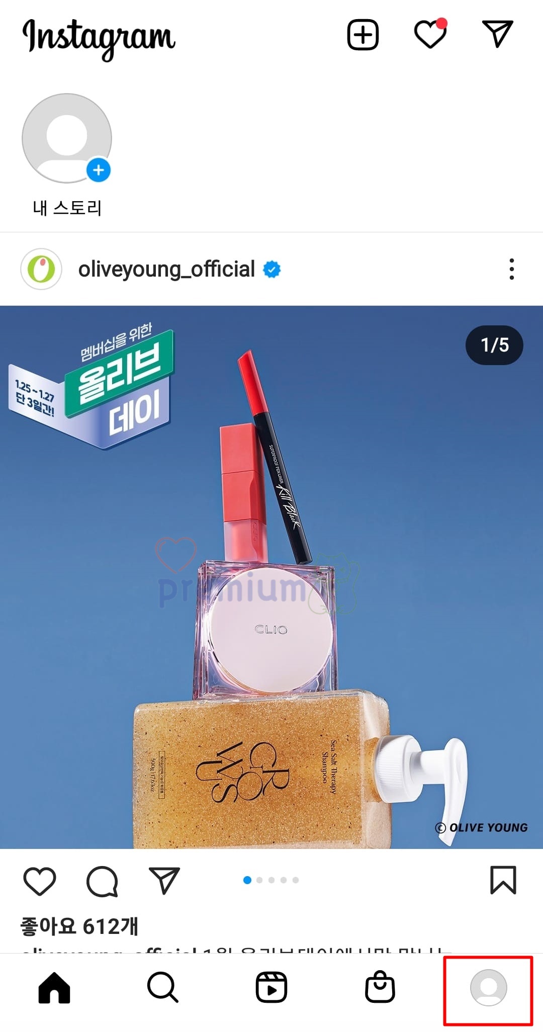 1. '인스타그램 앱'을 실행합니다.
