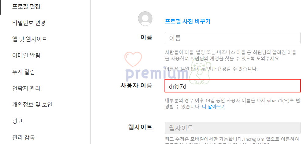 PC 인스타그램 사용자 이름 변경 방법