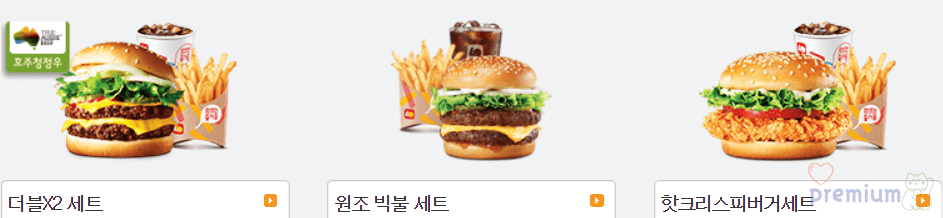 | 한우 명품팩 | 16,800원 | 1,863kcal | NEW 한우불고기 버거 + 핫크리스피버거 |