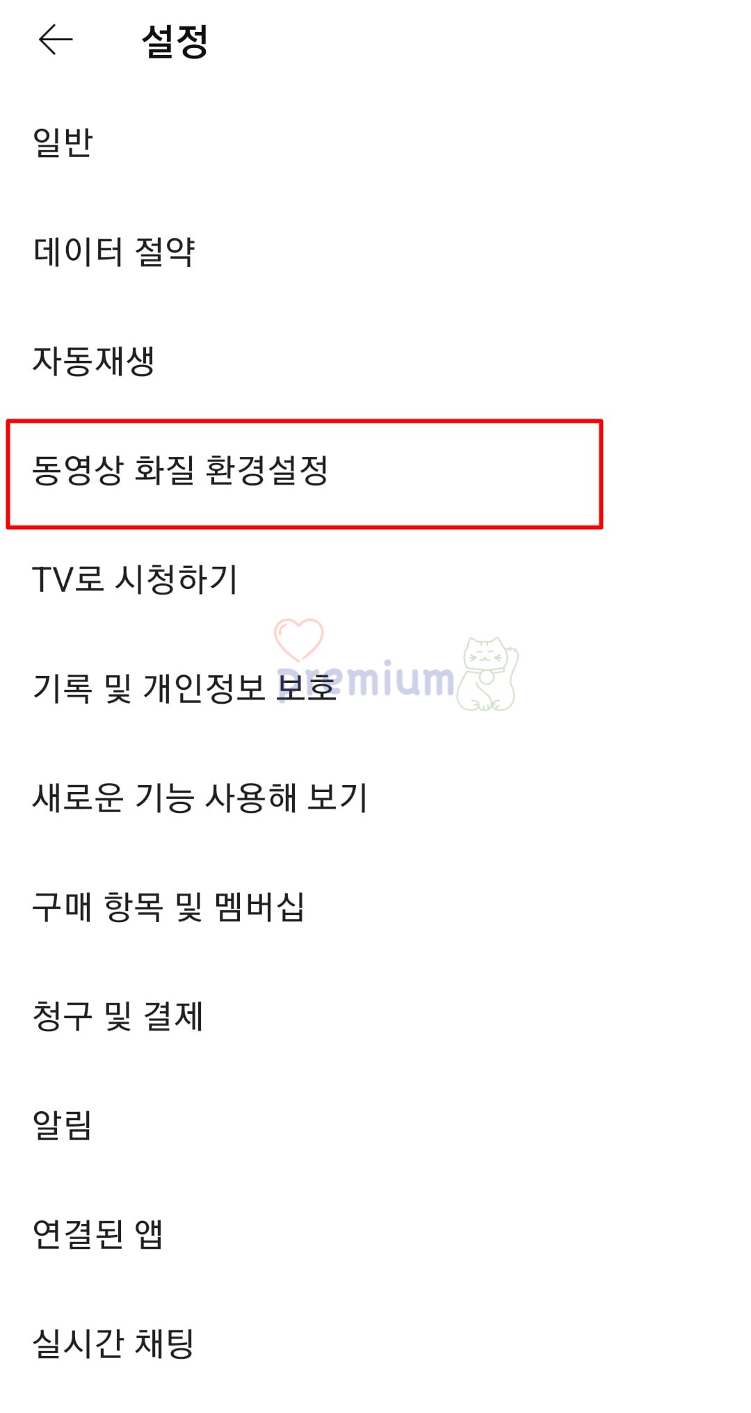 4. 동영상 화질 환경설정을 클릭합니다.