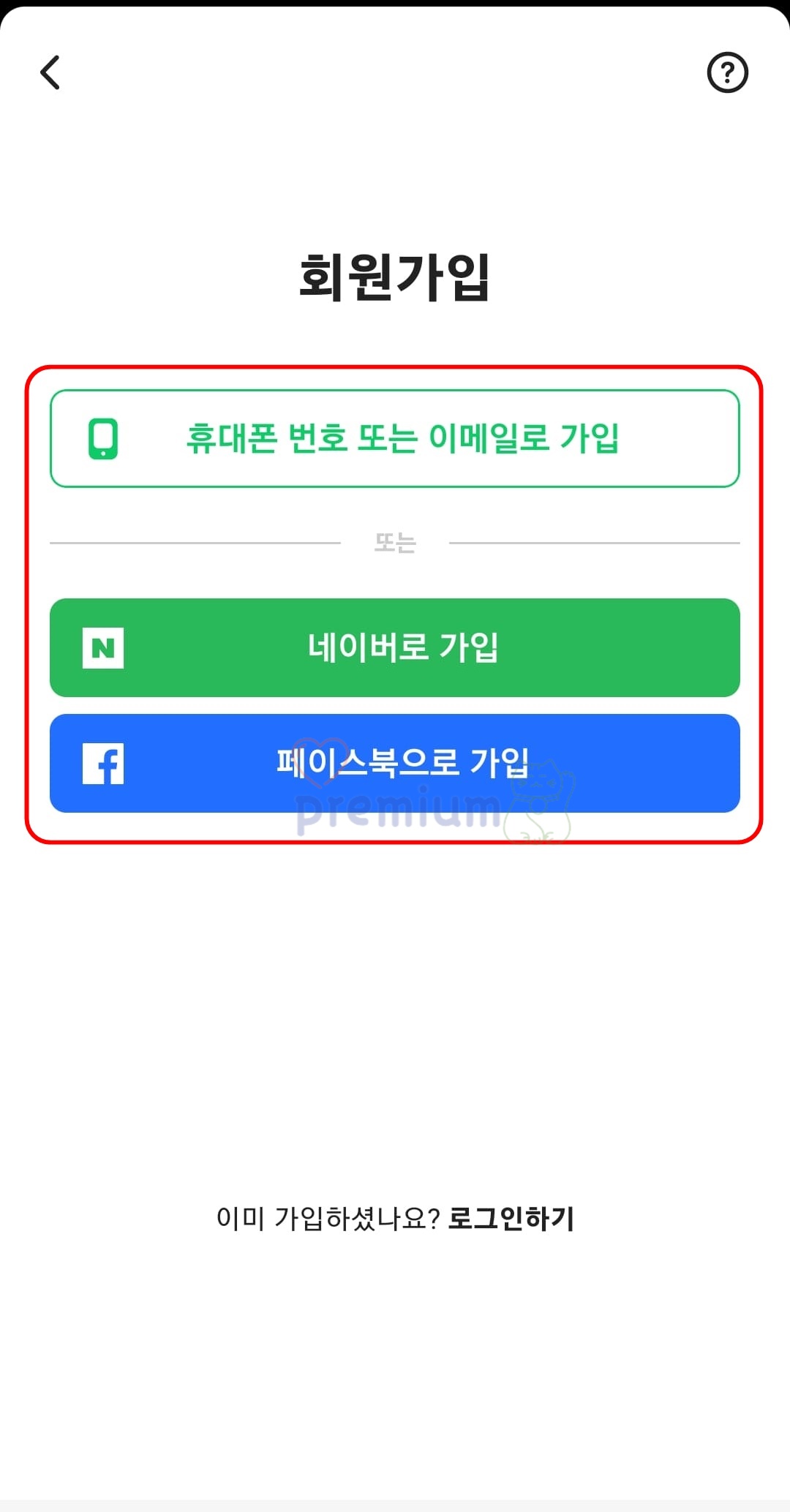 - 네이버로 가입 : 네이버 아이디와 비밀번호를 입력합니다.