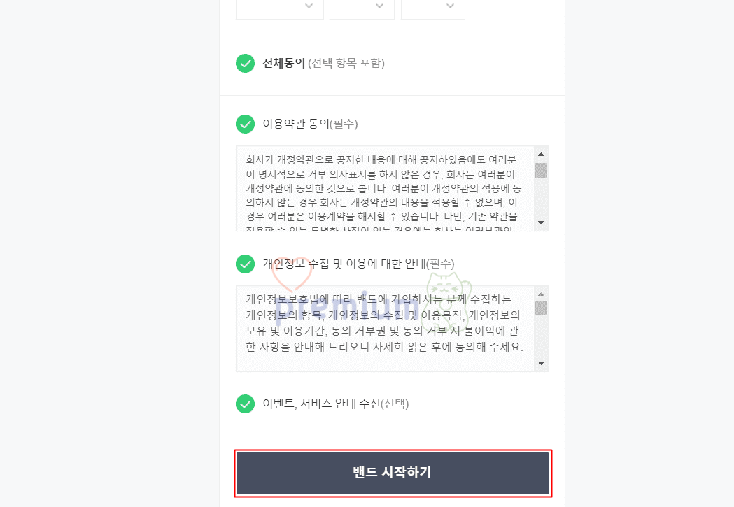 7. 밴드 시작하기 버튼을 클릭합니다.