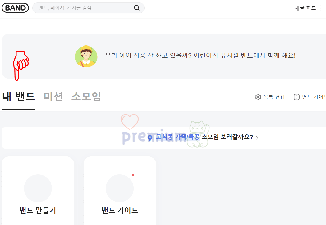 1. 'PC 네이버밴드'를 실행합니다. (https://band.us/ko)