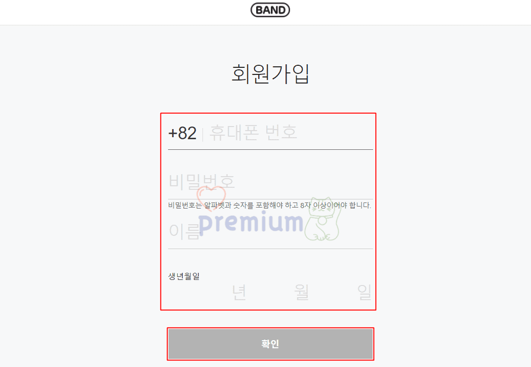 - 휴대폰 번호로 가입 : 본인의 휴대폰 번호와 설정하고 싶은 비밀번호, 이름과 생년월일을 입력합니다.