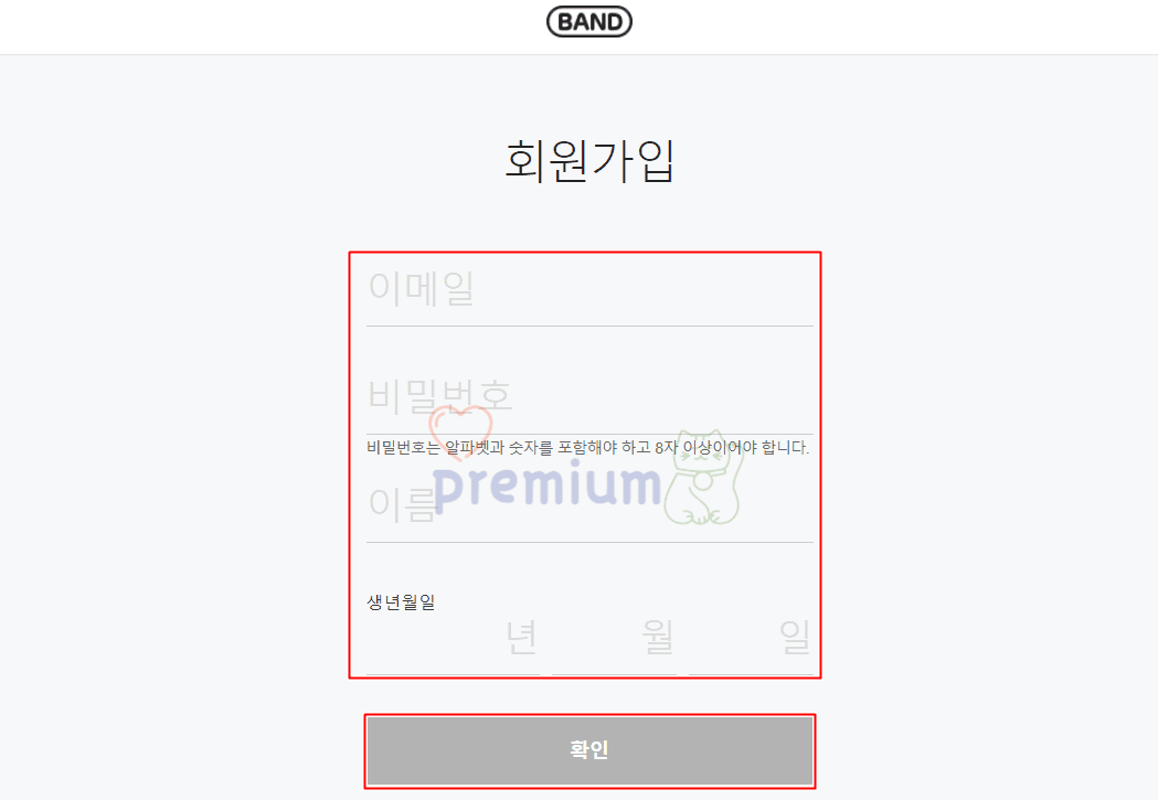 - 이메일로 가입 : 본인의 이메일과 설정하고 싶은 비밀번호, 이름과 생년월일을 입력합니다.