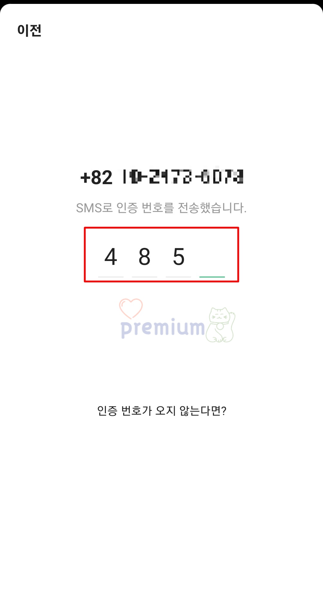 입력하신 휴대폰 번호로 인증문자 4자리 숫자가 전송됩니다. 이때 4자리 숫자를 입력하시면 됩니다.