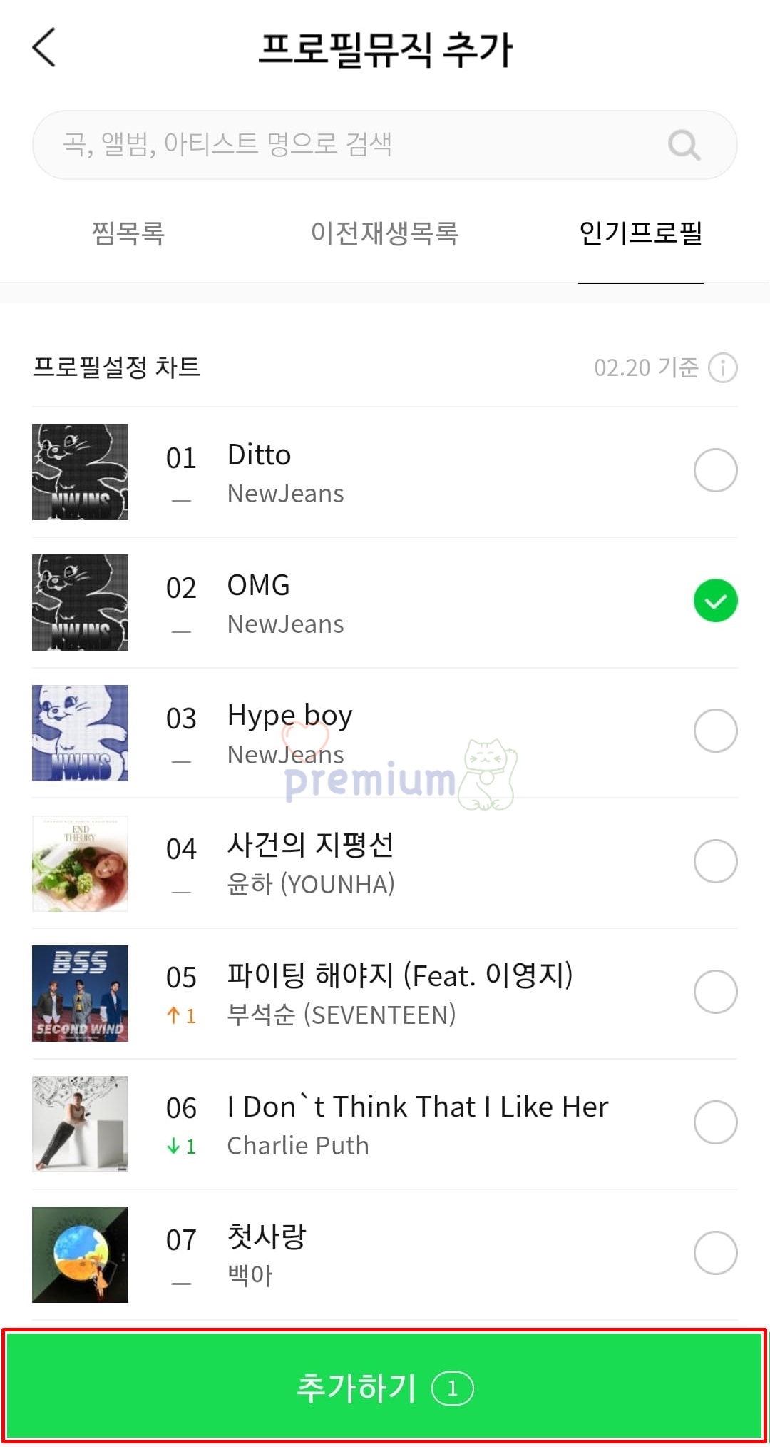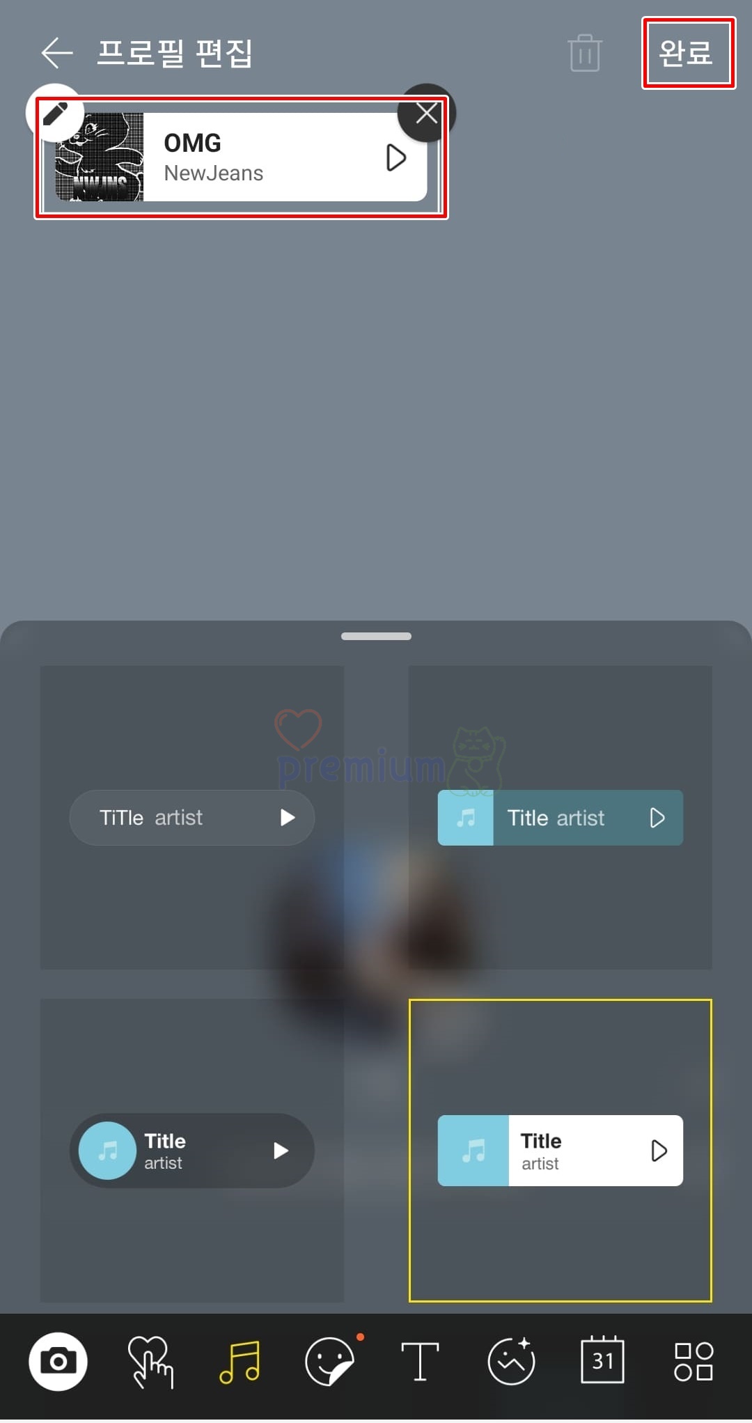 8. 프로필 뮤직에 올릴 음악 리스트를 선택합니다.