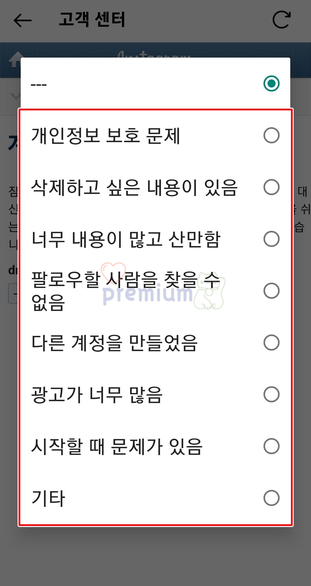 11. 삭제하려는 이유에 항목을 클릭합니다.
