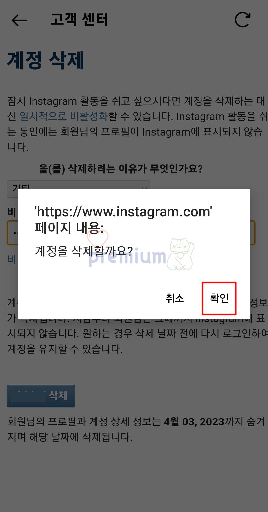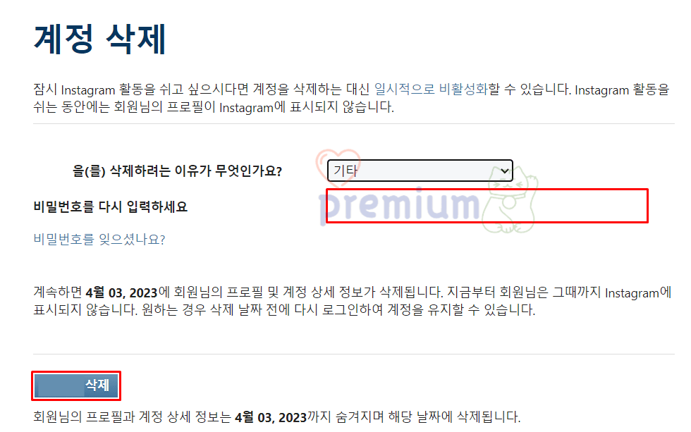 7. Instagram 계정 삭제하기를 클릭합니다.