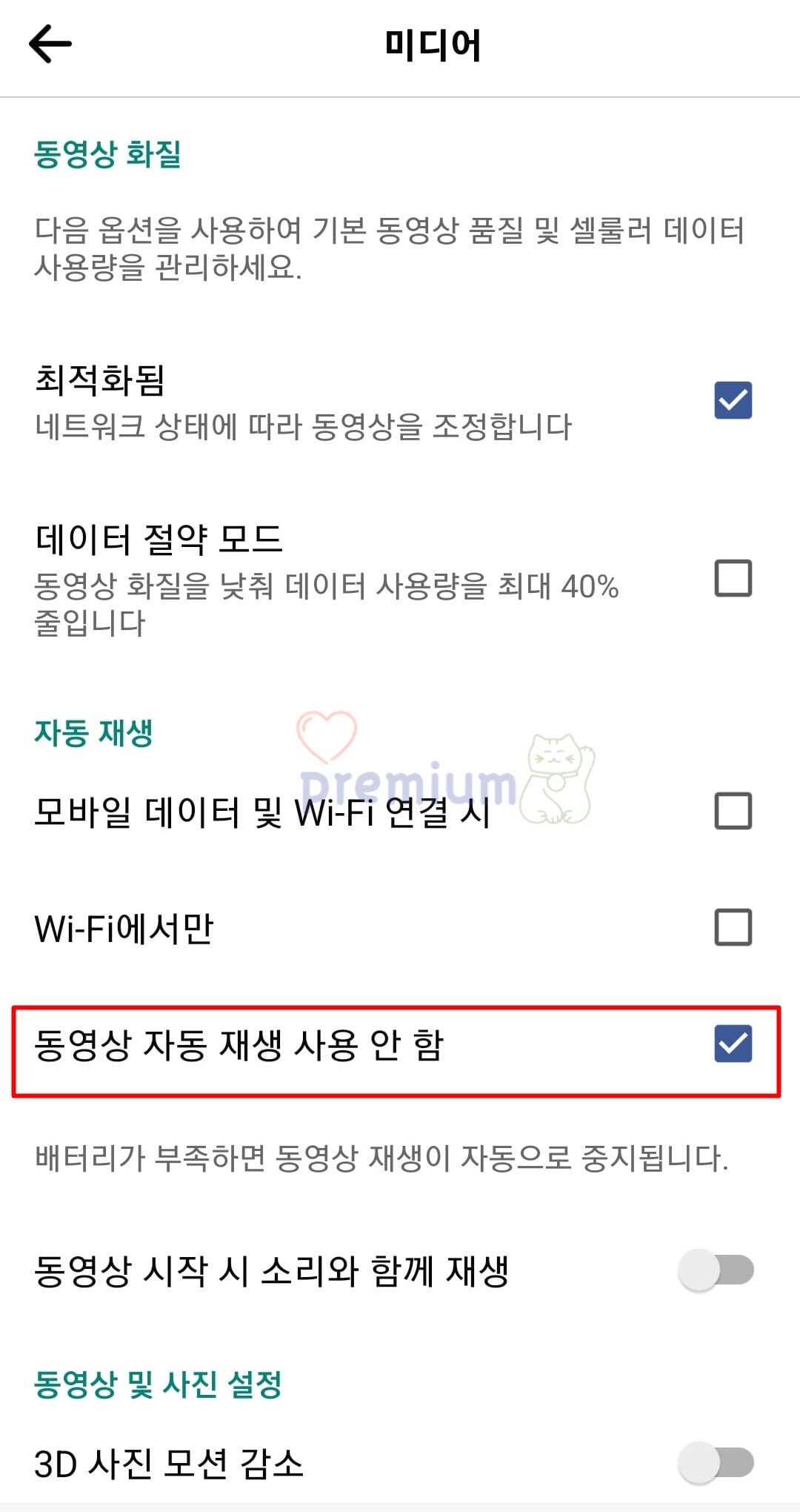 6. 동영상 자동재생이 해제됩니다.