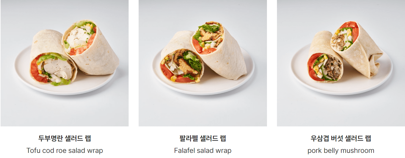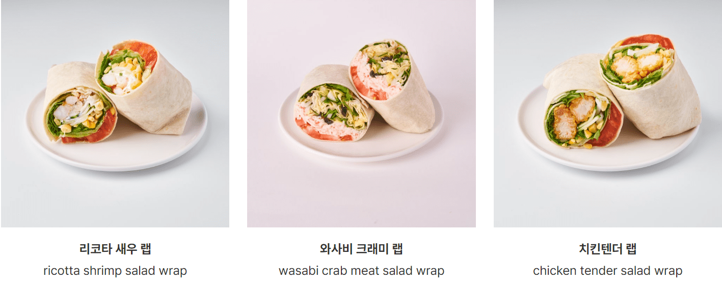 | 두부명란 샐러드 랩 | 12,900 | 410 | ★ 와사비마요 드레싱 |