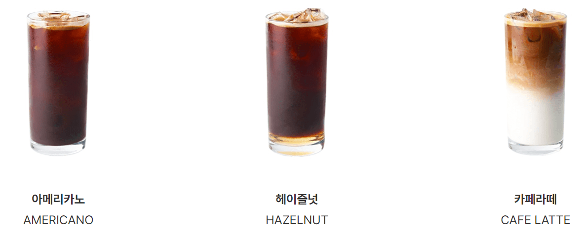| 헤이즐넛 | 4,000 | 스페셜 티 원두 + 프리미엄 헤이즈널 시럽 |