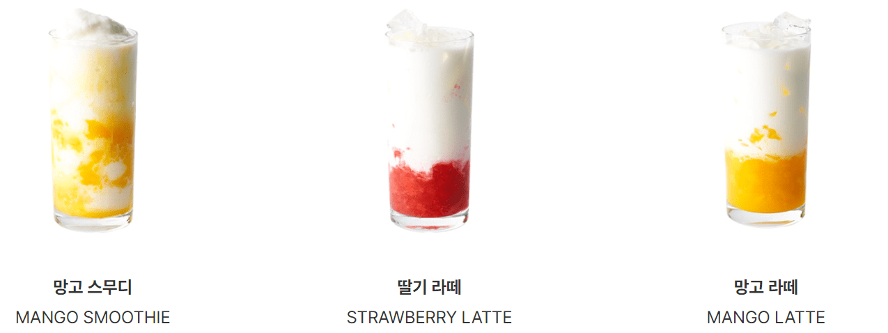 | 망고 라떼 | 5,000 | 우유 + 망고 |