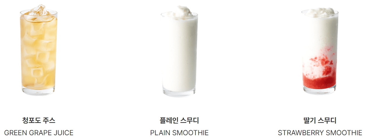 | 청포도 주스 | 4,900 | 청포도 |
