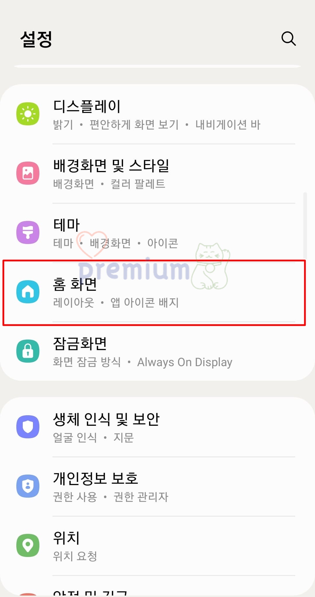 2. 홈 화면을 클릭합니다.