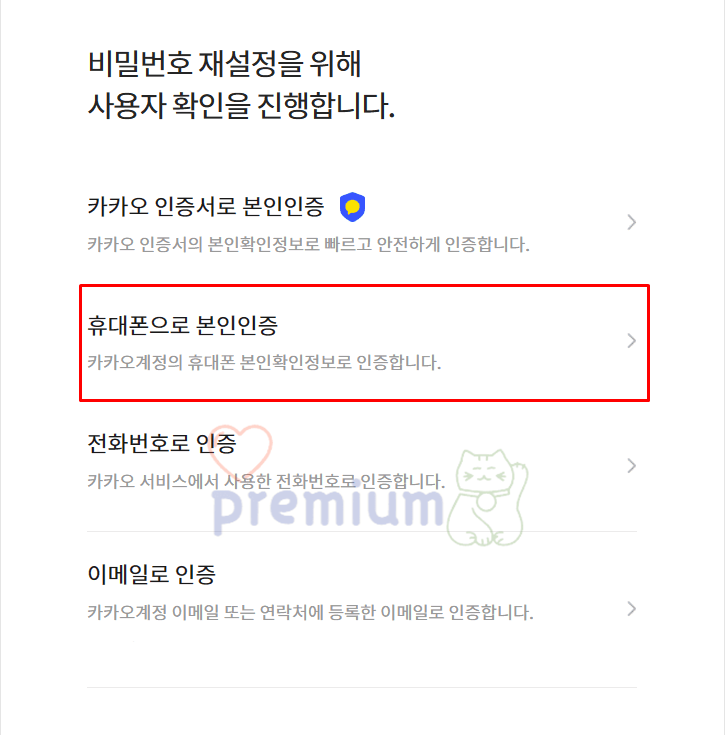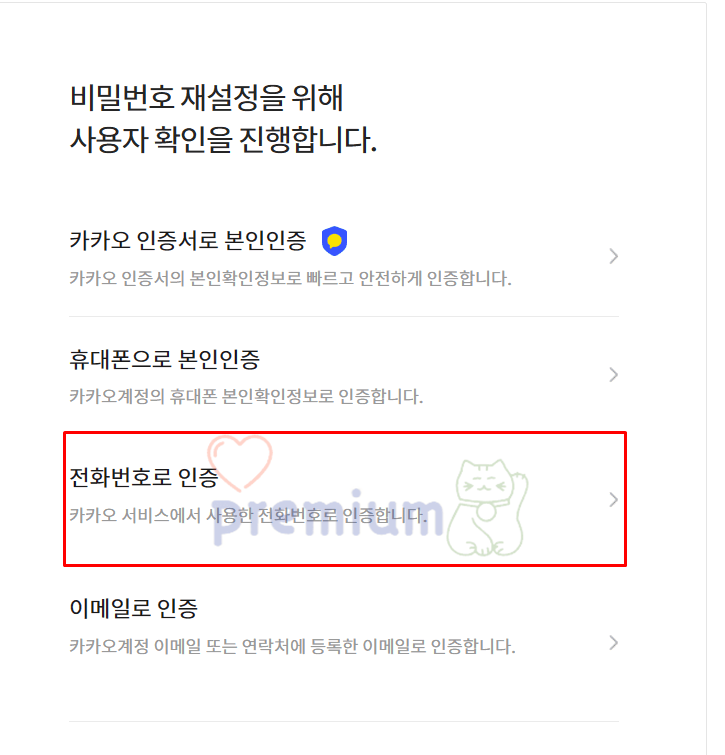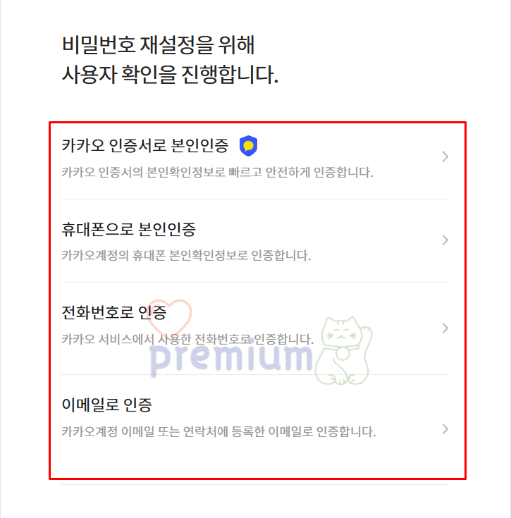 이 방법은 카카오 인증서가 있으셔야 진행을 하실 수 있습니다.