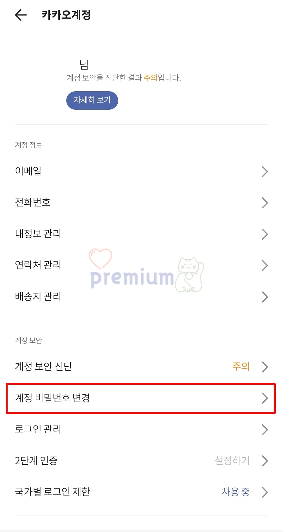 모바일 카카오톡 계정 비밀번호 변경 방법
