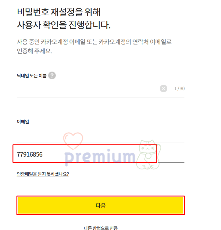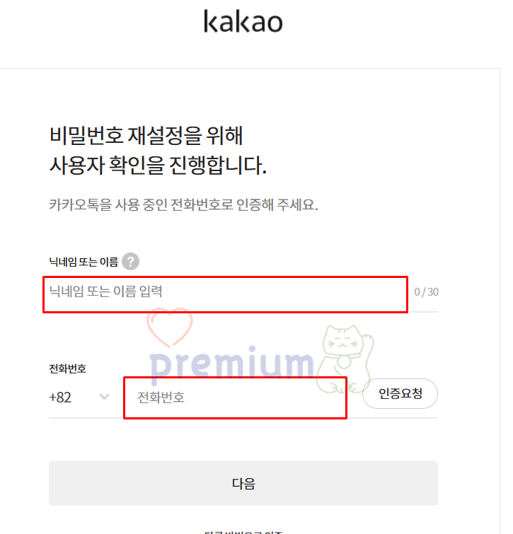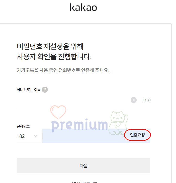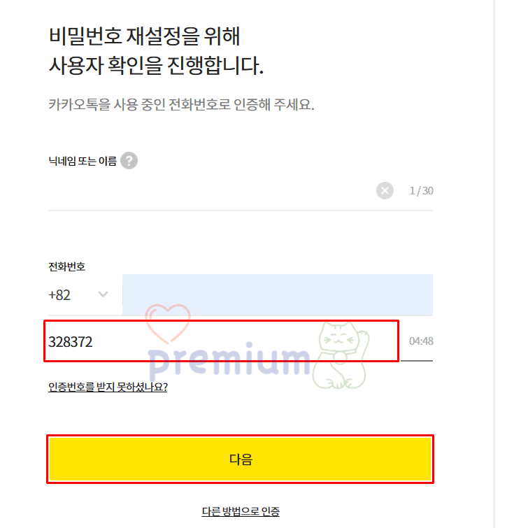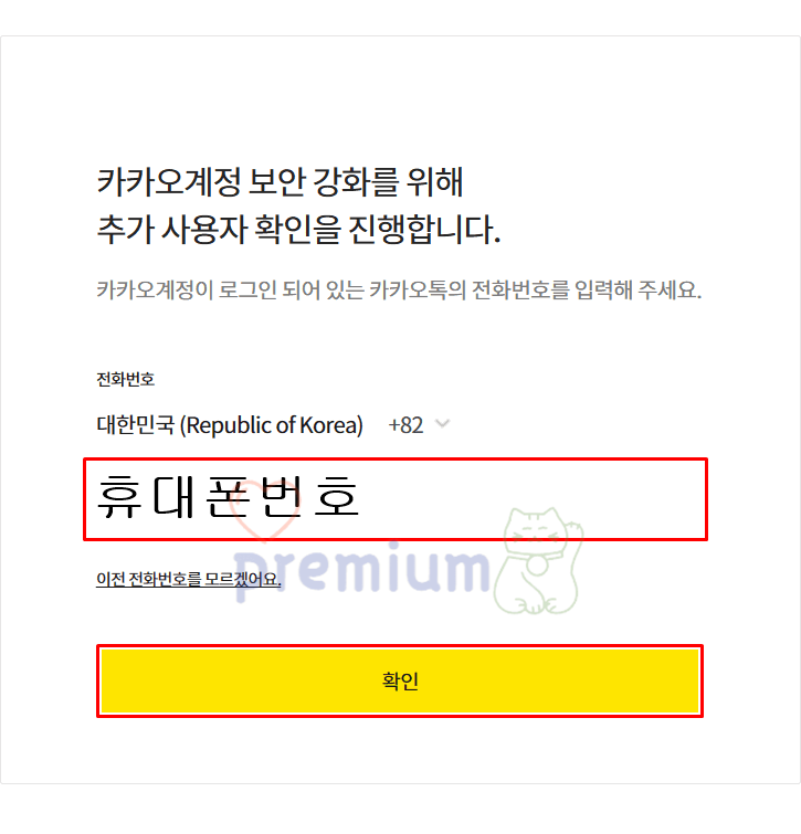⑧ 추가 본인 확인을 하기 위해서 카카오톡의 등록된 휴대폰 번호를 입력합니다.