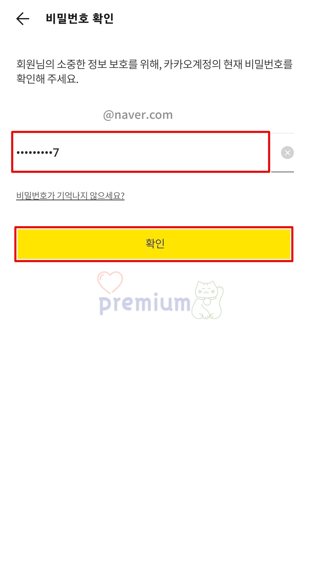 6. 현재 카카오계정 비밀번호를 입력합니다.