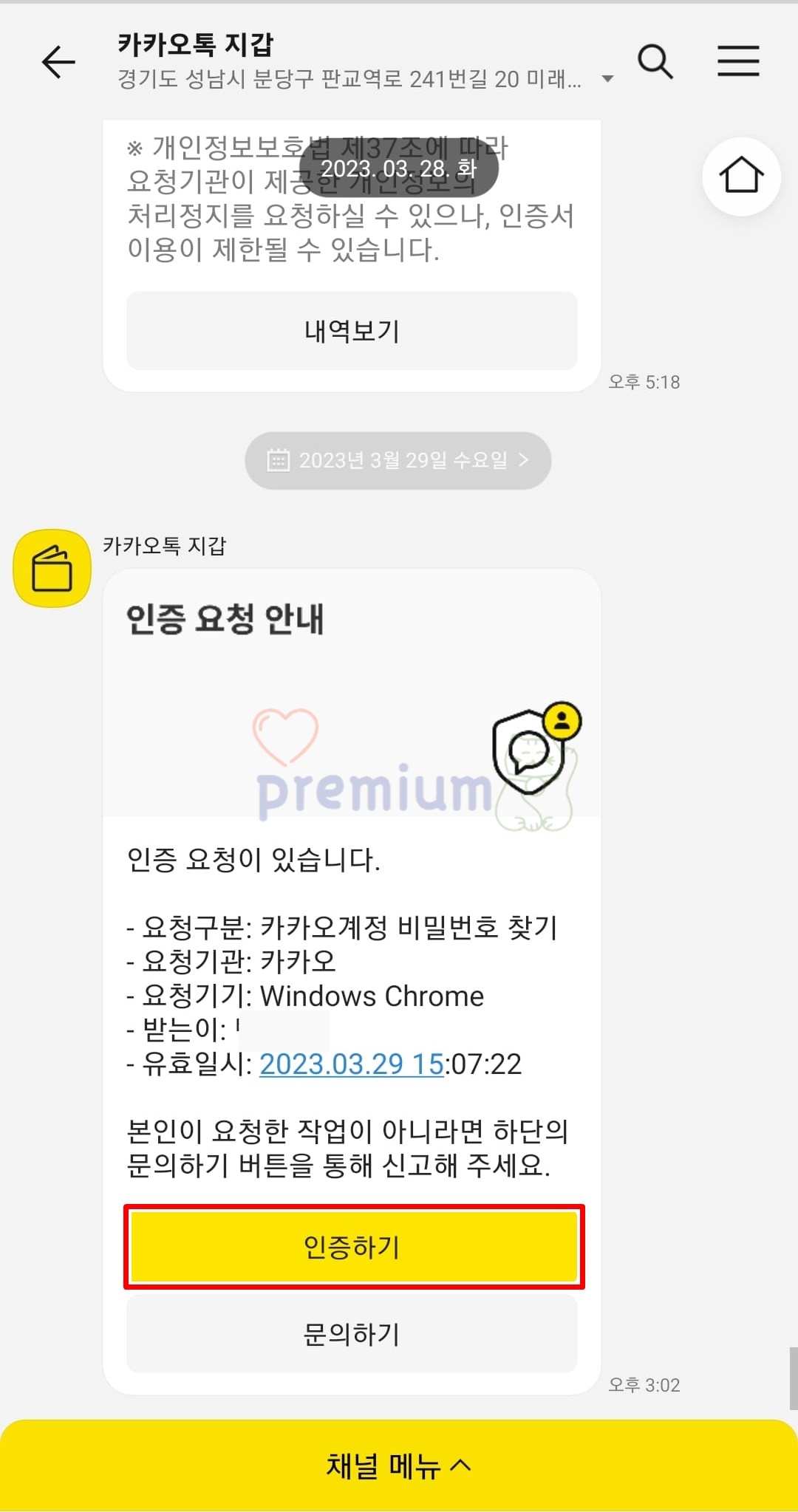 ④ 카카오톡 지갑으로 인증 요청 안내가 전송됩니다.