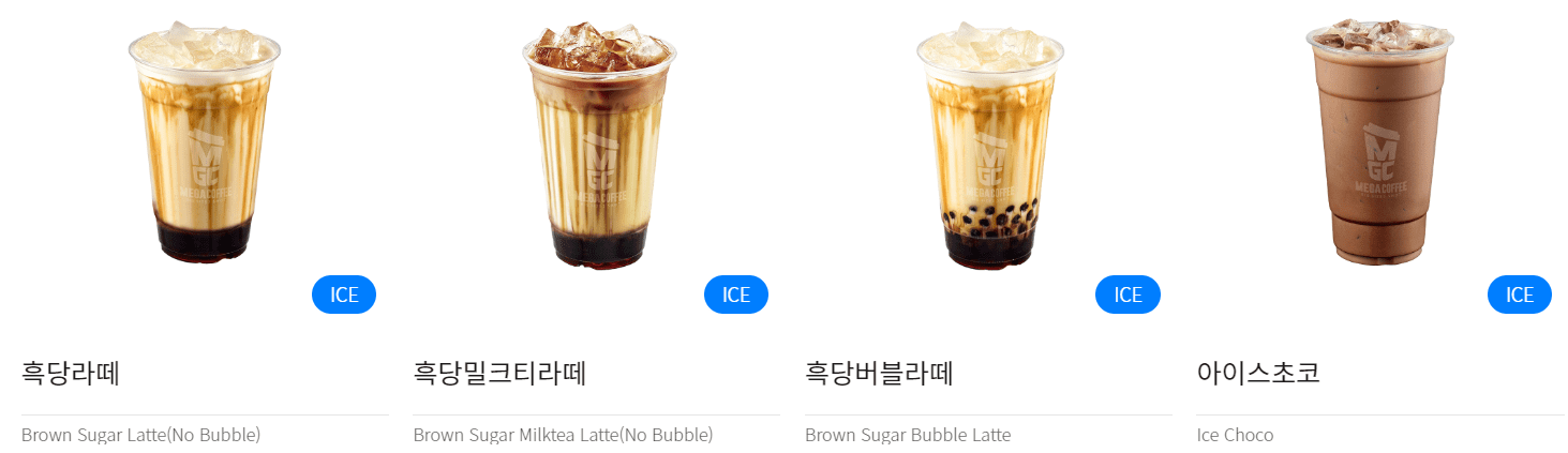 | 흑당버블 라떼 | 3,500 | 320.3 | 흑당 + 우유 + 흑당 버블 |
