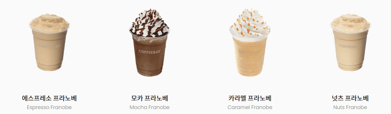 | 카라멜 프라노베 | 4,500 | 369 | 진한 에스프레소 + 카라멜 |