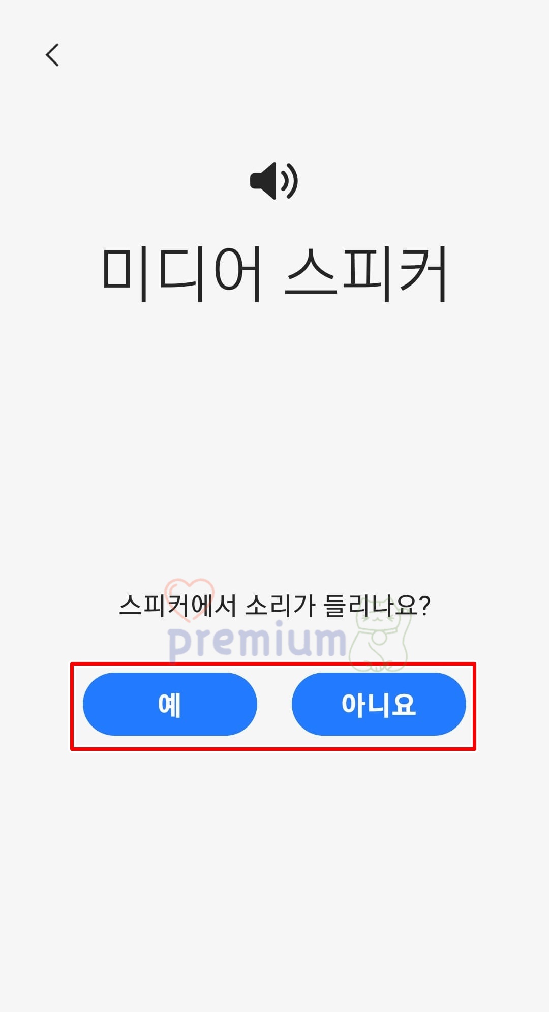 6. 스피커에서 소리가 들리면 예 버튼을 누르고 소리가 들리지 않는다면 아니요 버튼을 클릭합니다.