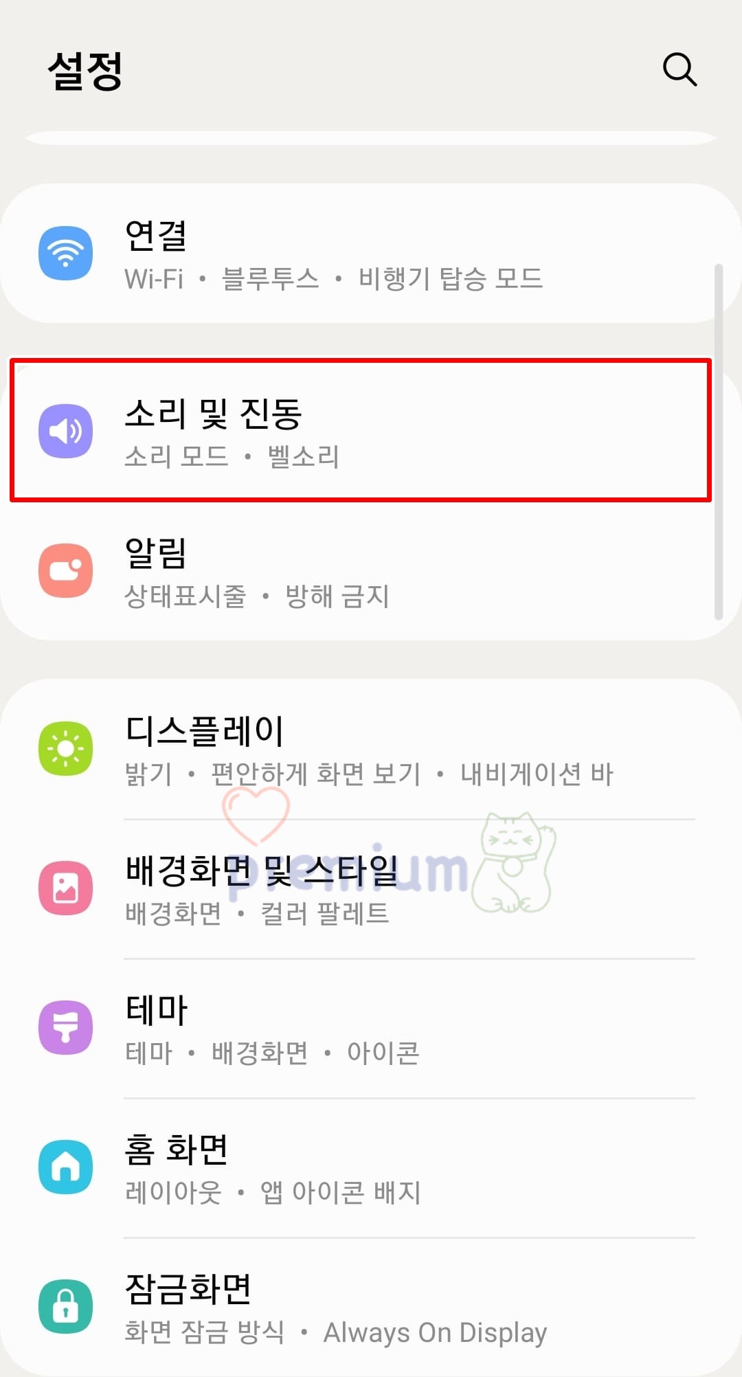 1. 설정 앱 > 소리 및 진동 탭을 클릭합니다.