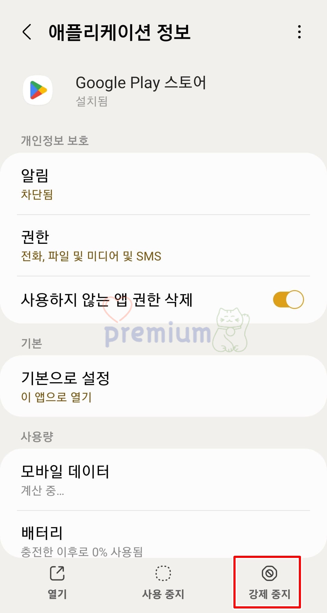 플레이스토어 앱 강제 중지