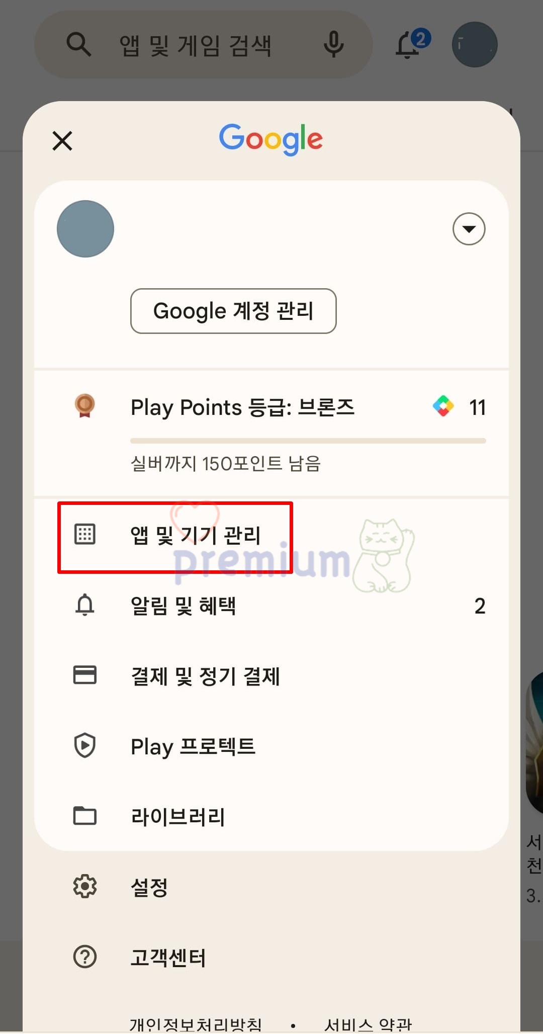 3. 앱 및 기기 관리 탭을 클릭합니다.