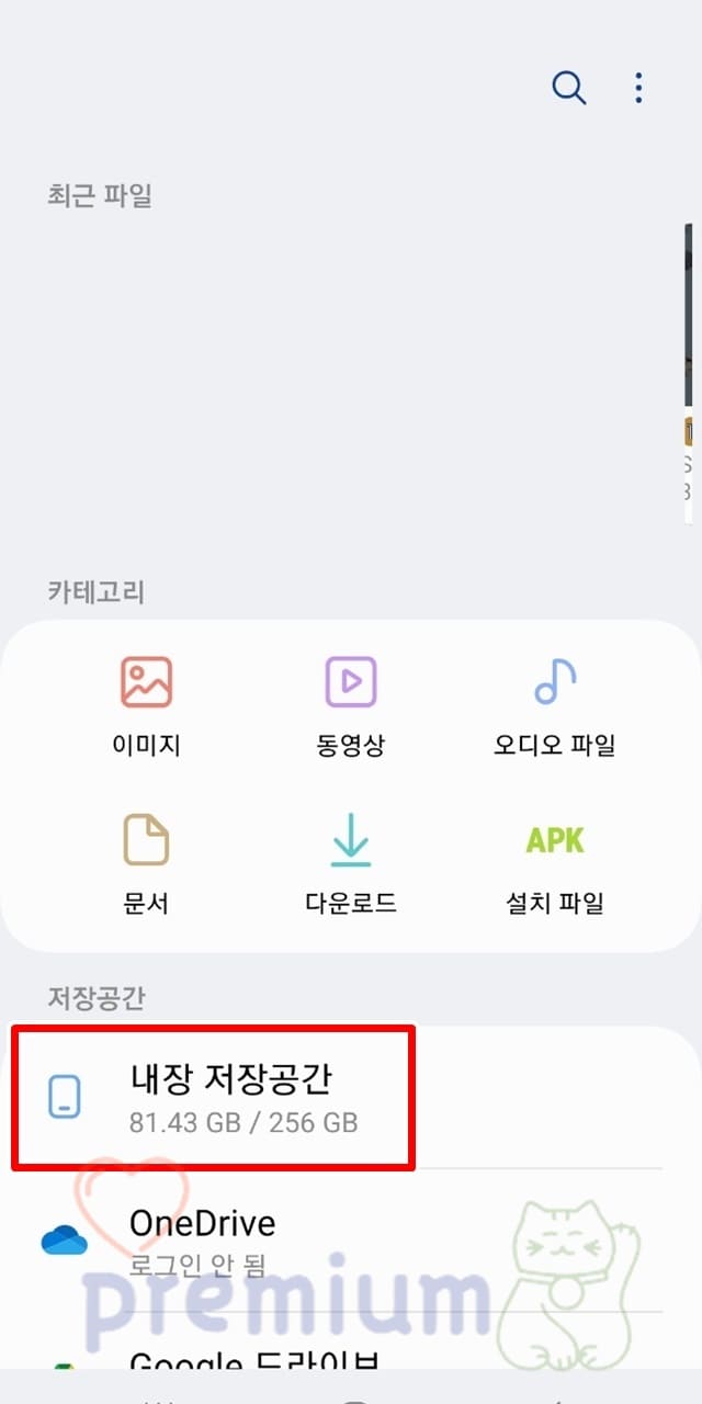 1. 내 파일 앱 > 내장 저장공간 탭을 클릭합니다.