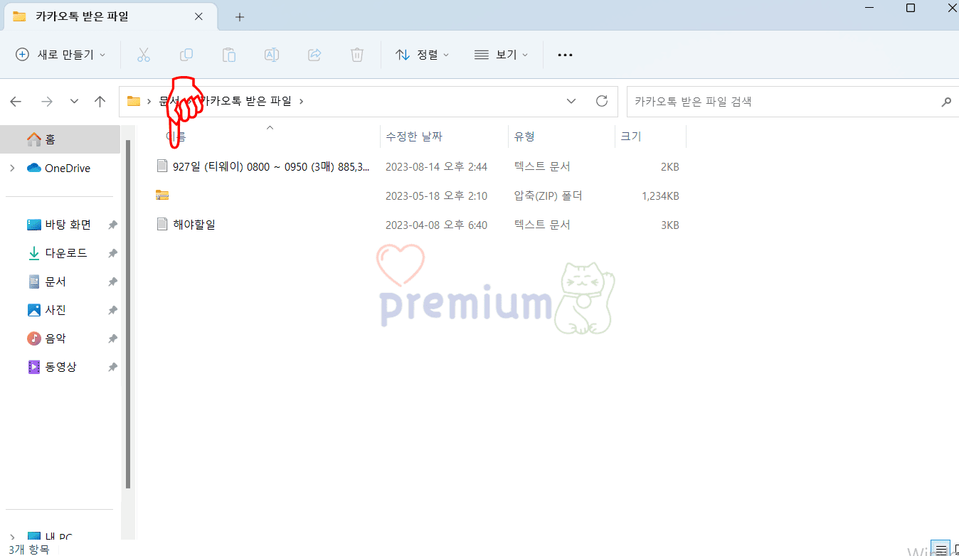 4. 카카오톡에서 다운로드받은 파일을 확인합니다.