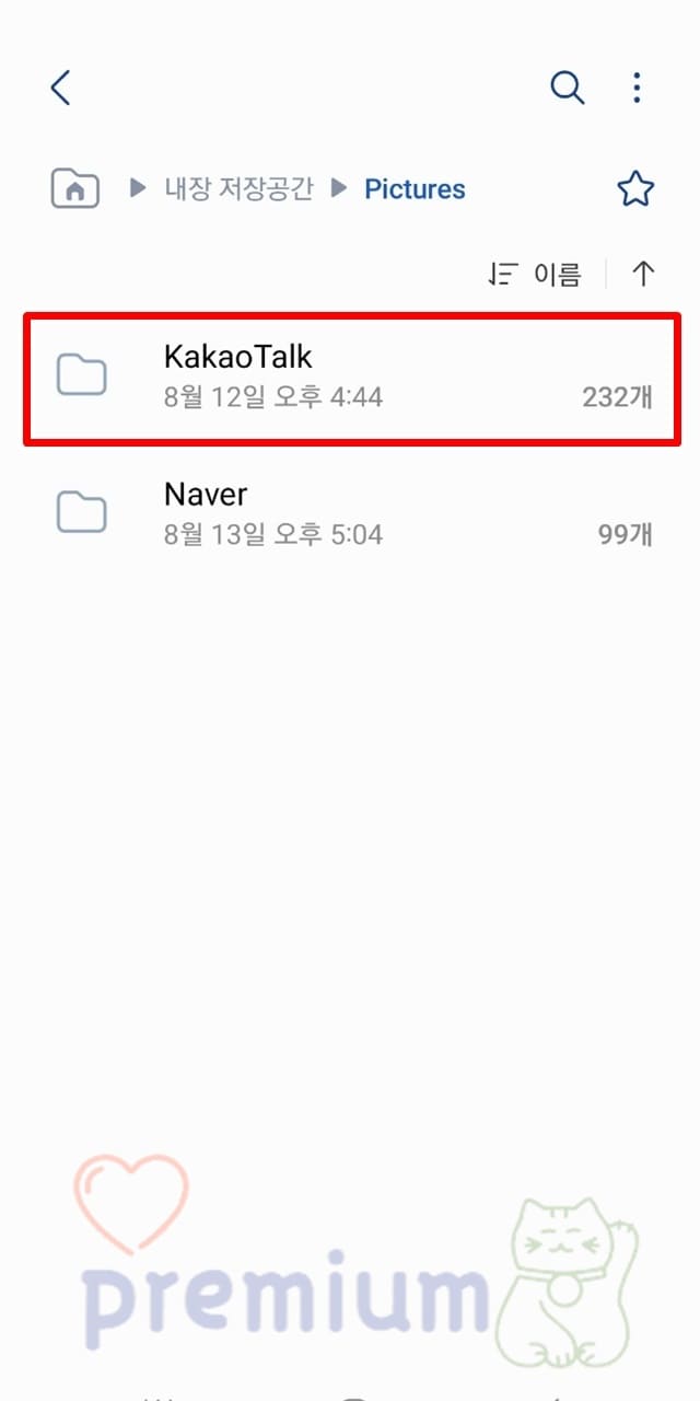 | 모바일 카카오톡에서 다운받은 사진은 '갤러리 > Kakao Talk' 폴더에도 저장됩니다. |