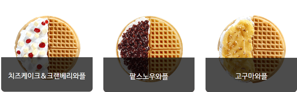 | 팥스노우 와플 | 3,900 | 467 | 팥앙금 + 생크림 |