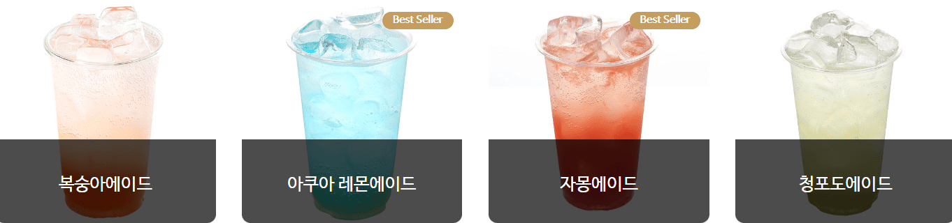 | 아쿠아 레몬에이드 | 3,000 | 387 | 레몬 베이스 + 사이다 + 천연 허브 시럽 |