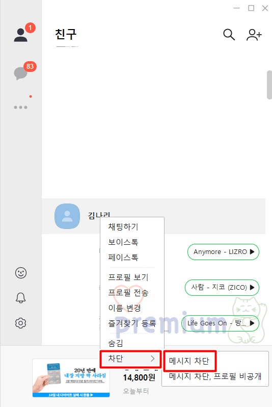 PC로 카카오톡 친구 차단하기