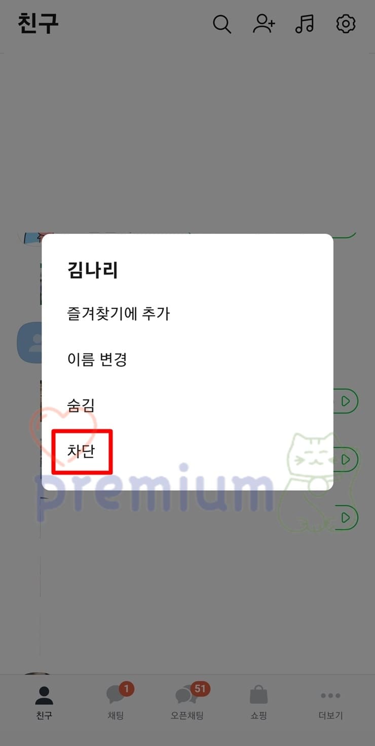 모바일로 카카오톡 친구 차단하기